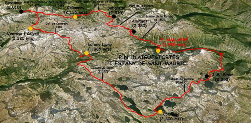 Carros de Foc es una ruta de montaña de recorrido circular que une los 9 refugios de montaña que hay dentro del Parque Nacional d’Aigües Tortes i Estany de Sant Maurici.